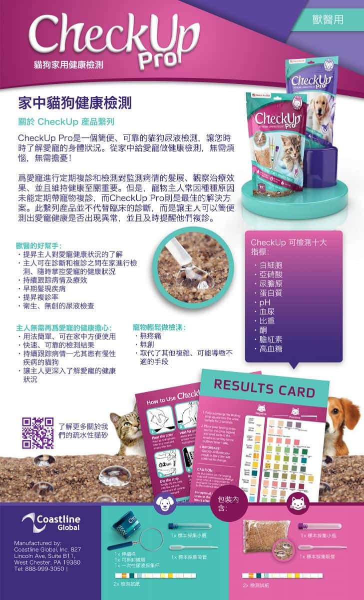 CheckUp Pro 是一個簡便,可靠的貓狗尿液檢測,讓你時刻可了解愛寵身體狀況,只須60秒立即知道!