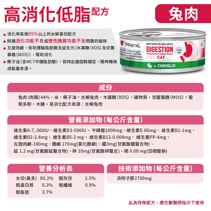 Disugual 意極鮮 處方糧 貓罐頭 高消化低脂配方 兔肉 85g (DSDTG012) | 意大利製造 - 限時優惠價