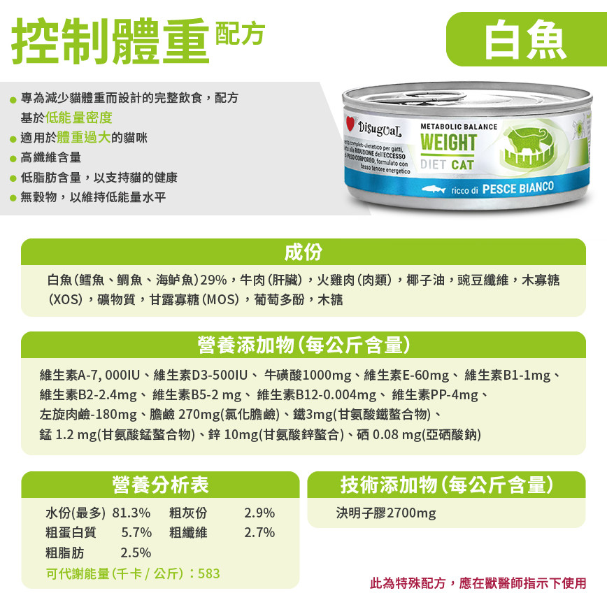 Disugual 意極鮮 處方糧 貓罐頭 控制體重配方 白魚 85g (DSDTG072) | 意大利製造 - 限時優惠價