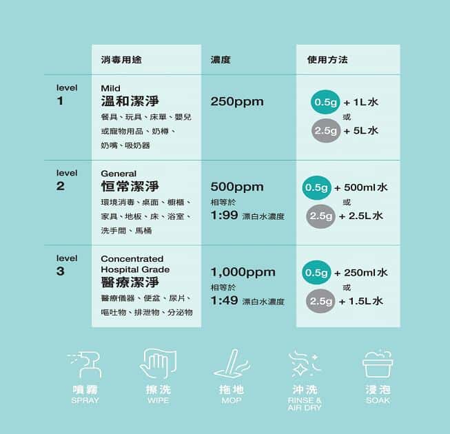 • 簡單 - 方便易用,簡單調配不同ppm濃度