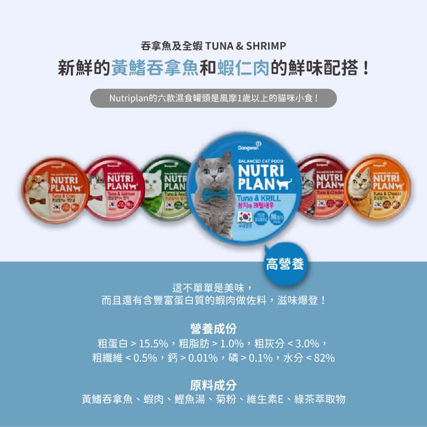 搶購中!Nutriplan 貓罐頭 營養企劃,韓國低磷主食罐,特選磷蝦及白身吞拿魚,為全齡貓提供優質均衡營養。160g大份量,原箱24件更划算。獨特配方,有助腎臟健康,改善挑食問題。正貨保證,立即選購,滿額免費貓狗飲水機! Nutriplan 貓罐頭 營養企劃 韓國低磷主食罐 磷蝦及白身吞拿魚 160g (64621) - 原箱24件 (夾袋)