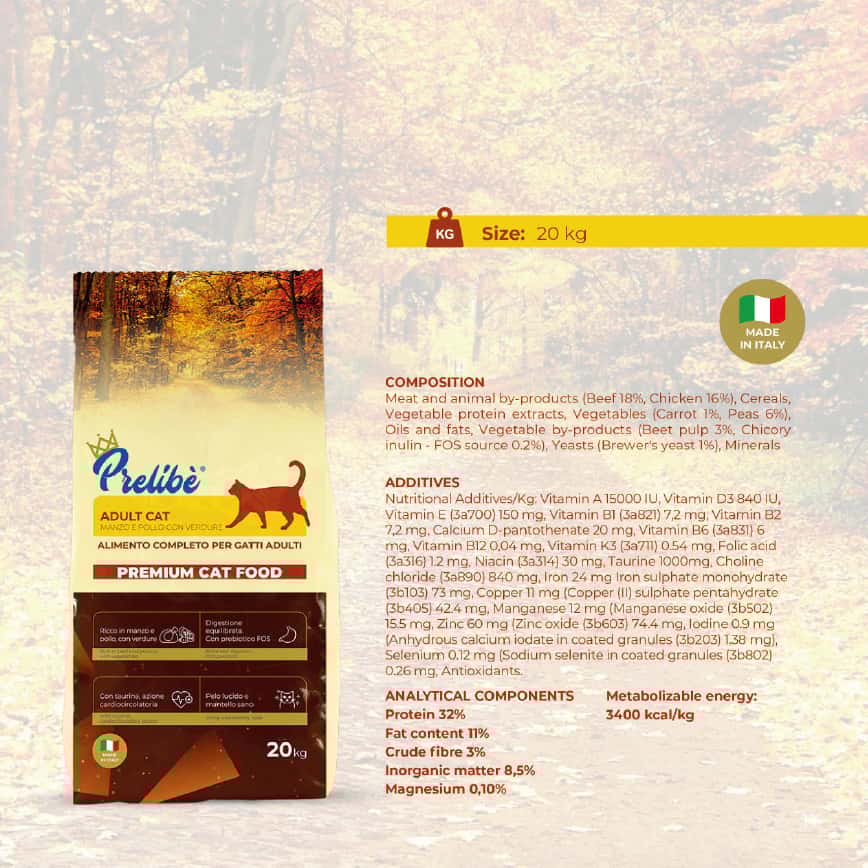 Prelibe 派樂比 意大利成貓乾糧 牛肉雞肉蔬菜配方 全品種適用 20kg 勁量裝 (限時體驗價)