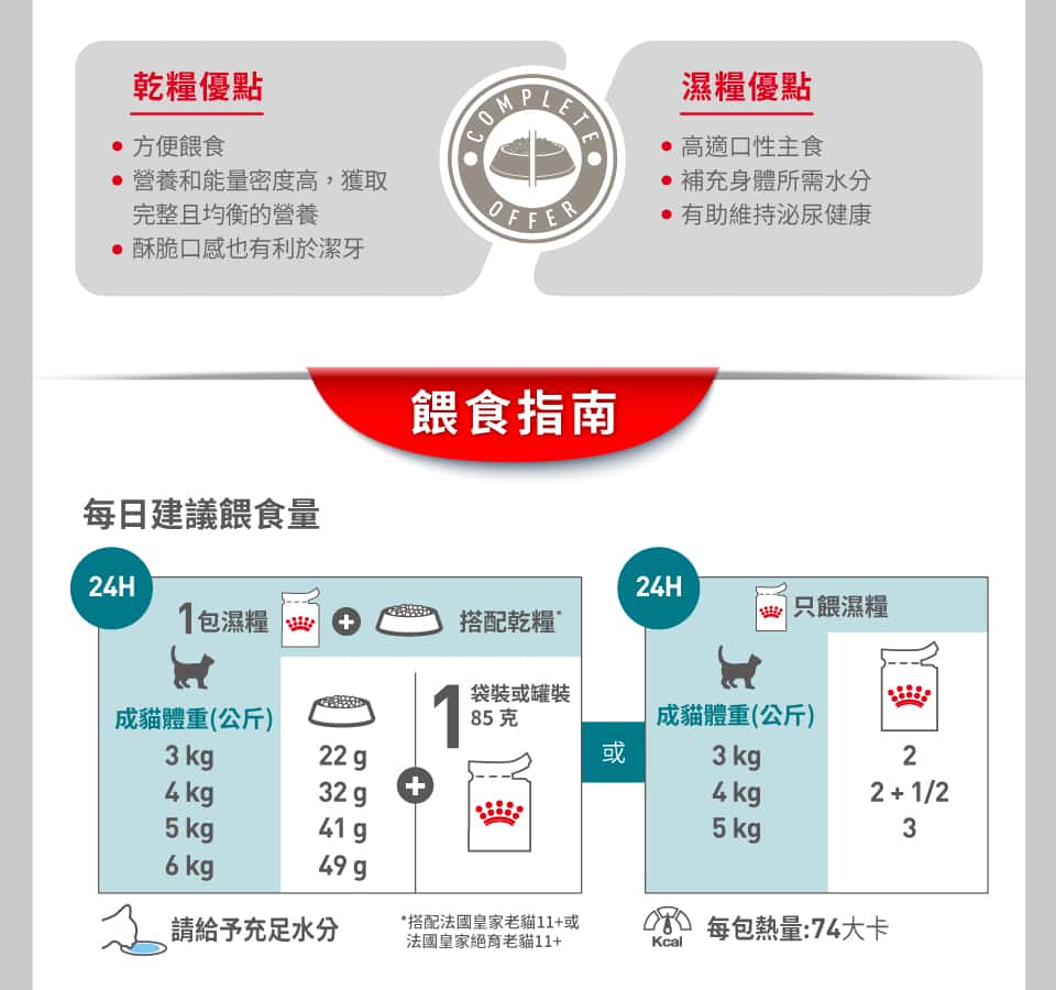 有的,Royal Canin法國皇家提供了濕糧或貓罐頭作為選擇。濕糧可以提供多樣的口感和口味,並提供額外的水分給您的貓咪。您可以根據貓咪的個人喜好和特殊需求,在乾糧和濕糧之間進行選擇,以確保其營養均衡。