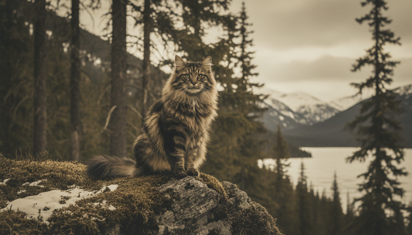 挪威森林貓,在挪威語中被稱為「Skogkatt」,意為「森林之貓」。牠們的歷史可以追溯到數百年前,是斯堪的納維亞半島的本土貓種,被認為是維京人的寵物和船上的捕鼠能手。這些貓咪在挪威寒冷的森林中經過數百年的自然選擇,演化出獨特的外觀和強韌的體質,以適應嚴酷的氣候環境。牠們的祖先可能來自中東的短毛貓,經由維京人帶到北歐,再與當地的野貓雜交,逐漸形成了現在的挪威森林貓。